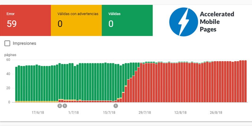 Pues así es, como indica el título del artículo, hoy me ha tocado revisar y arreglar todos los errores de validación de AMP de varias de mis páginas webs. Creo que no hace falta que recalquemos la importancia que tiene y el efecto que puede provocar en el posicionamiento web tener correctamente instalado y configurado el AMP en nuestras páginas webs.